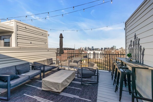 Geniet van frisse lucht en een prachtig uitzicht op de stad vanaf uw eigen dakterras. Met patio voor acht personen is het de perfecte plek om te ontspannen met een verfrissend drankje na een leuke dag winkelen en hoppen in een restaurant.