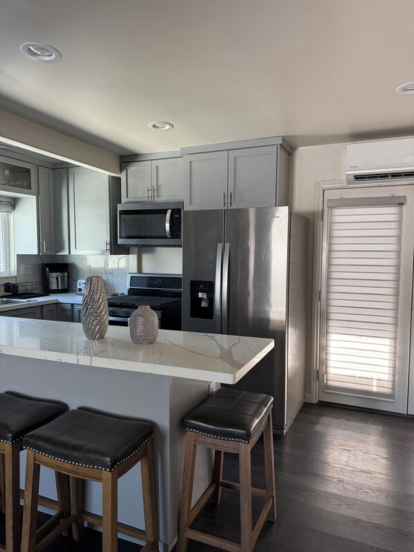 Step into this stylish and serene small house, thoughtfully designed with a modern naval touch. Tucked behind another home, this private space offers the comfort of a full house which is perfect for families, couples, or traveling professionals. Includes: 2 Bedrooms 2 Bathrooms Pull out couch that turns into a full bed Fully Equipped Kitchen Coffee/Tea Station Smart TV+Wi-Fi Washer and Dryer Handicap ramp Private Parking Private Entrance Quiet Location– Peaceful setting behind the main house