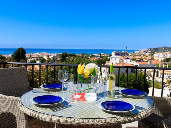 "Limoneros", appartement 3-kamers 73 m2, op het zuiden gelegen. Ruim en licht, zeer comfortabel ingericht: woon-/eetkamer met Digitale TV, air-conditioning en heteluchtverwarming. Uitgang naar de zitplaats in de tuin. 1 kamer met 1 2-pers bed (160 cm, lengte 200 cm). Open keuken (oven, afwasmachine, 4 keramische glas kookplaten, broodrooster, waterkoker, magnetron, diepvriezer, elektrische koffiemachine). Uitgang naar de zitplaats in de tuin. Douche/WC. Souterrain: 1 kamer met 1 2-pers bed (160 cm, lengte 200 cm), douche/WC, air-conditioning en heteluchtverwarming. Uitgang naar de zitplaats in de tuin. Ruime zithoek in de tuin. Terrasmeubelen. Panoramazicht op zee en de plaats. Ter beschikking: wasmachine, strijkijzer, kinderstoel, kinderbed, haardroger. Internet (WiFi, gratis). Eén tweepersoonskamer is buiten het appartement. Niet rokers woning. VUT/MA69630 // Reg. Nr.: ESFCTU00002901300011137400000000000000000VUT/MA696300