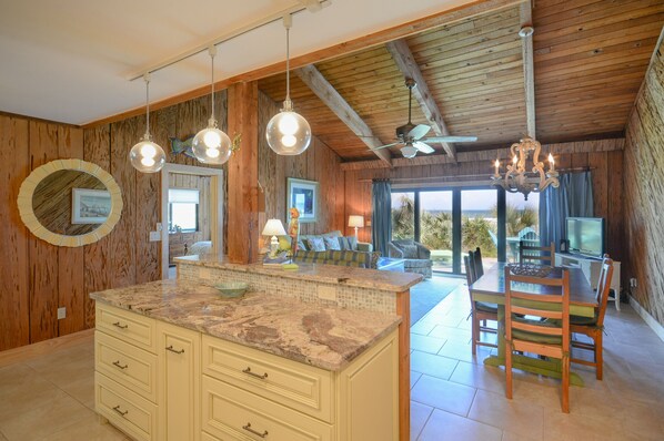 Ruime directe oceaan 3 slaapkamers en 2 badkamers stadshuis gelegen in de duinen en palmettos in Sea Dunes, Sailfish. Garage voor 1 auto. Oceanfront dek met tafel en stoelen om te genieten van maaltijden aan de oceaan. Cypress interieur houten afwerking en tegelvloeren overal met tapijt in de slaapkamers. Oceanfront woonkamer met flatscreen-tv en dvd-speler. Uitzicht op de oceaan volledig uitgeruste keuken en eetkamer met zitplaatsen voor 6, extra zitplaatsen aan het aanrecht voor 2.