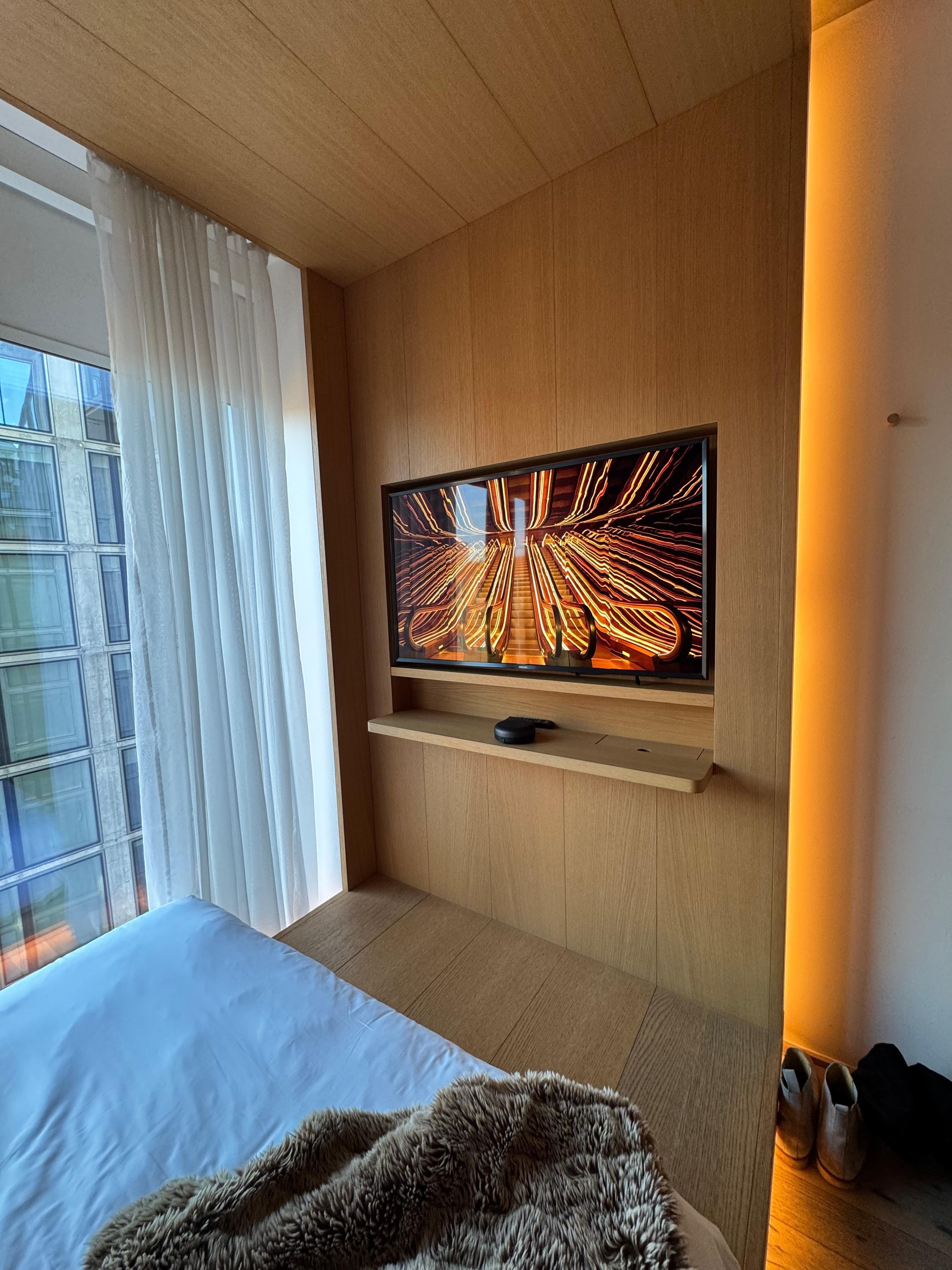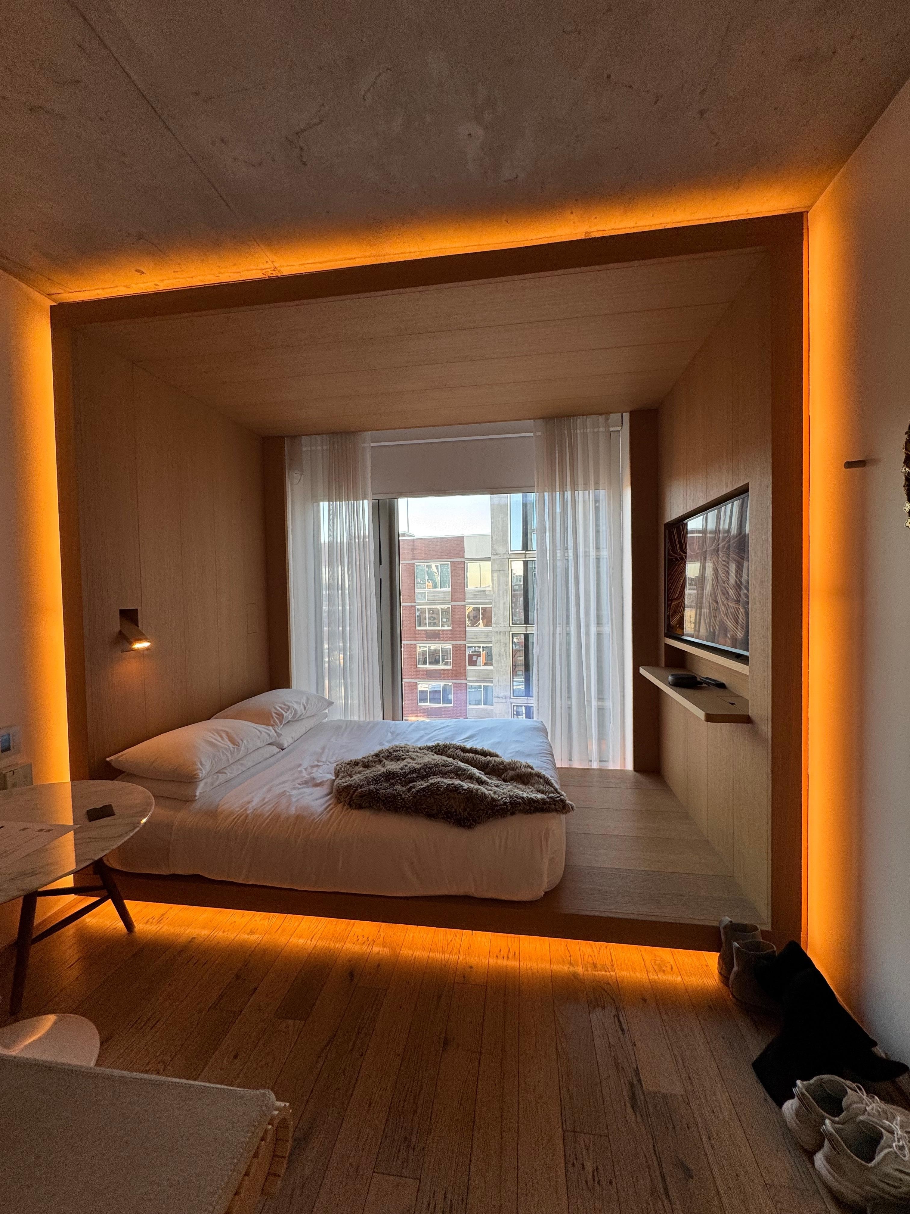 Het hotel verder was zelf vrij onpersoonlijk en de kamer was heel klein. Het bed lag heerlijk en de lichten in de kamer waren sfeervol.