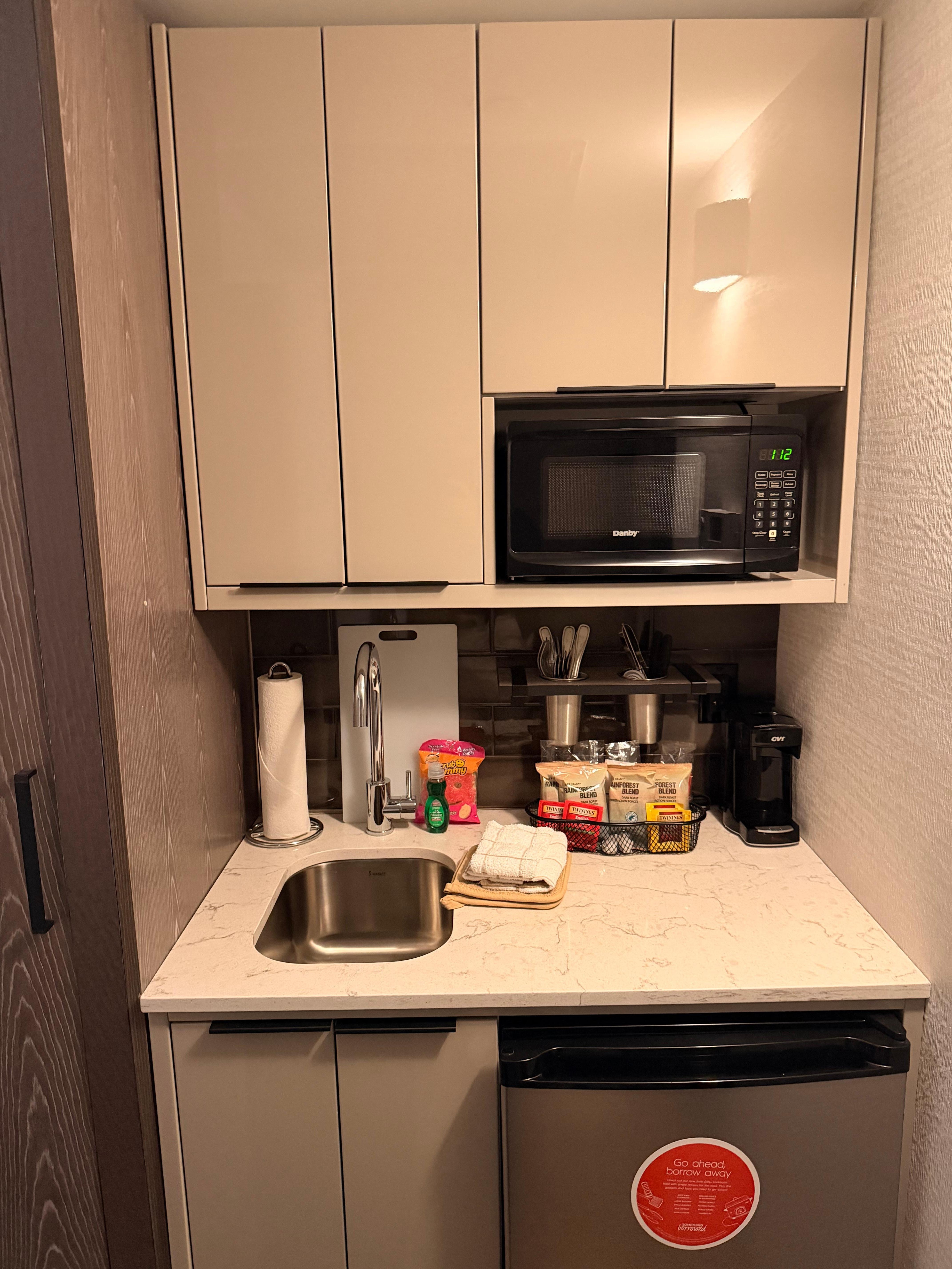 Room was small but efficient. Great having the kitchenette for longer stay. Breakfast selection was good, and it was offered up to 10am on weekdays, 10:30am on weekends so it fit into our schedule each day.