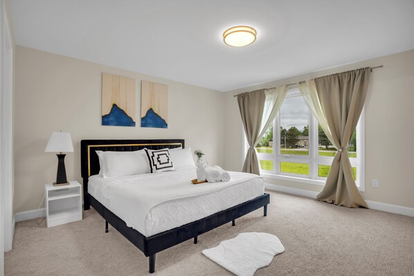 We stayed in this townhouse for two nights on a recent trip to Niagara Falls and we all agreed we wished we had booked it for longer! The home was very clean and comfortable. We would absolutely stay here again if ever back in the area! Book this space, you won't be disappointed. Highlights: Check in was a breeze with clear instructions. Communication with the host was prompt. Everything was very clean (and I am picky about that). The beds were very comfortable. There were 3 bedrooms, two queen beds and one king. There were 2.5 baths (half bath on the main floor). The area is very quiet and away from the action of NF, which worked well for us. There is an attached garage which was a nice surprise. Areas for improvement: There were a few small things that could have made the stay more comfortable. The weeds were out of control in the front and back yards, which made them impossible to use. We could have used most dish towels/cloths (there was only one dish towel and one dirty used sponge). The bedrooms were a bit sparse and could use more furniture - there were no dressers and only one lamp in all three rooms. Bedside tables and lamps for every room would have been nice. But these are all small things, and only mentioned to give the hosts feedback.
