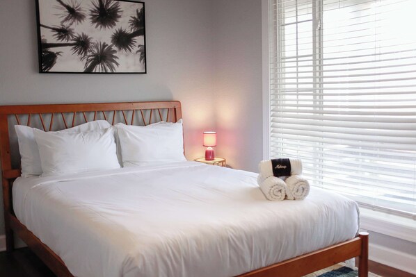 Each of the bedrooms features a queen size bed with fresh linens ready to cover you after a day spent at the beach.