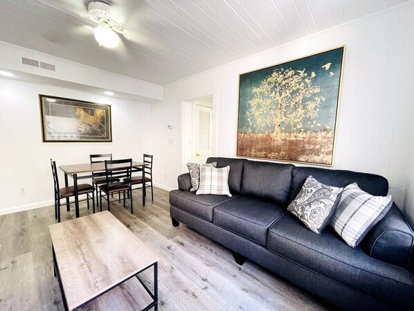 We enjoyed this place very much. Great location. We could walk to many restaurants and events. Beach access right across from the property. We even extended our stay another day. The only downside to it. .was the lack of parking.