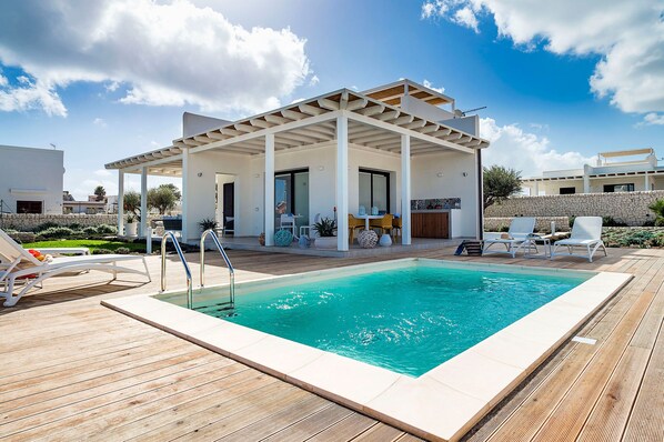 De locatie beschikt over een buitenzwembad en een bubbelbad.