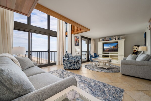 Exquisite 2 Story Penthouse with Spectacular Views of the Ocean and the Bay at the popular Sea Watch building. Condo features a gourmet kitchen with granite countertops and a large island. The living area features a large flat screen tv and views of the ocean that are unbeatable.