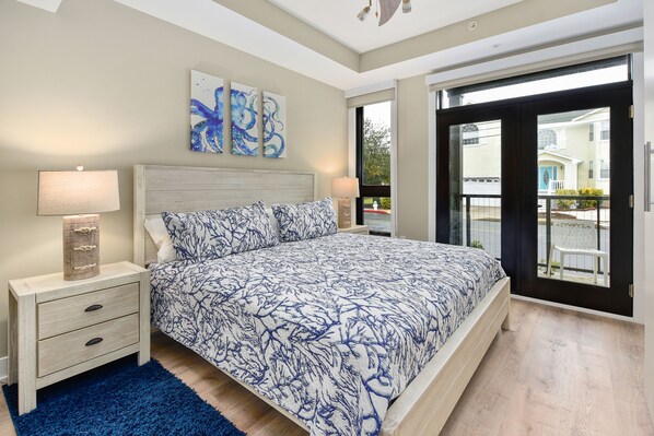 Photos are accurate. Condo is beautiful and just enough space for the week. Not oversized so 10 max is true. Cross the main road and one block to the beach. It took longer waiting for light to change than it did to walk to beach. Bring beach chairs! All 3 bedrooms can fit a twin air bed but it will take up the walkway next to the bed. Master is back of first floor. Shower water pressure not great in master shower but fine in all other baths. Only negative is the lack of pots/pans. One large fry pan (but no lid) and one medium pot. 2 cookie sheets. So if you’re cooking a big pot of pasta bring the pot 👍🏻 Oh and smoke detector is sensitive 😂.