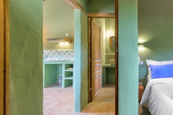 Een groene oase in het landschap, Sábia is een rustig toevluchtsoord voor twee personen met een serene slaapkamer, eigen badkamer en een lichte woonkamer die overloopt in een goed uitgeruste keuken met een kleine koelkast – ideaal voor een ontspannen, langer verblijf. Stap op jullie privéterras op het oosten om de opkomende zon te begroeten en te genieten van de stilte in de vallei.