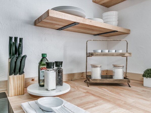 - Dishware + silverware + glassware for 2