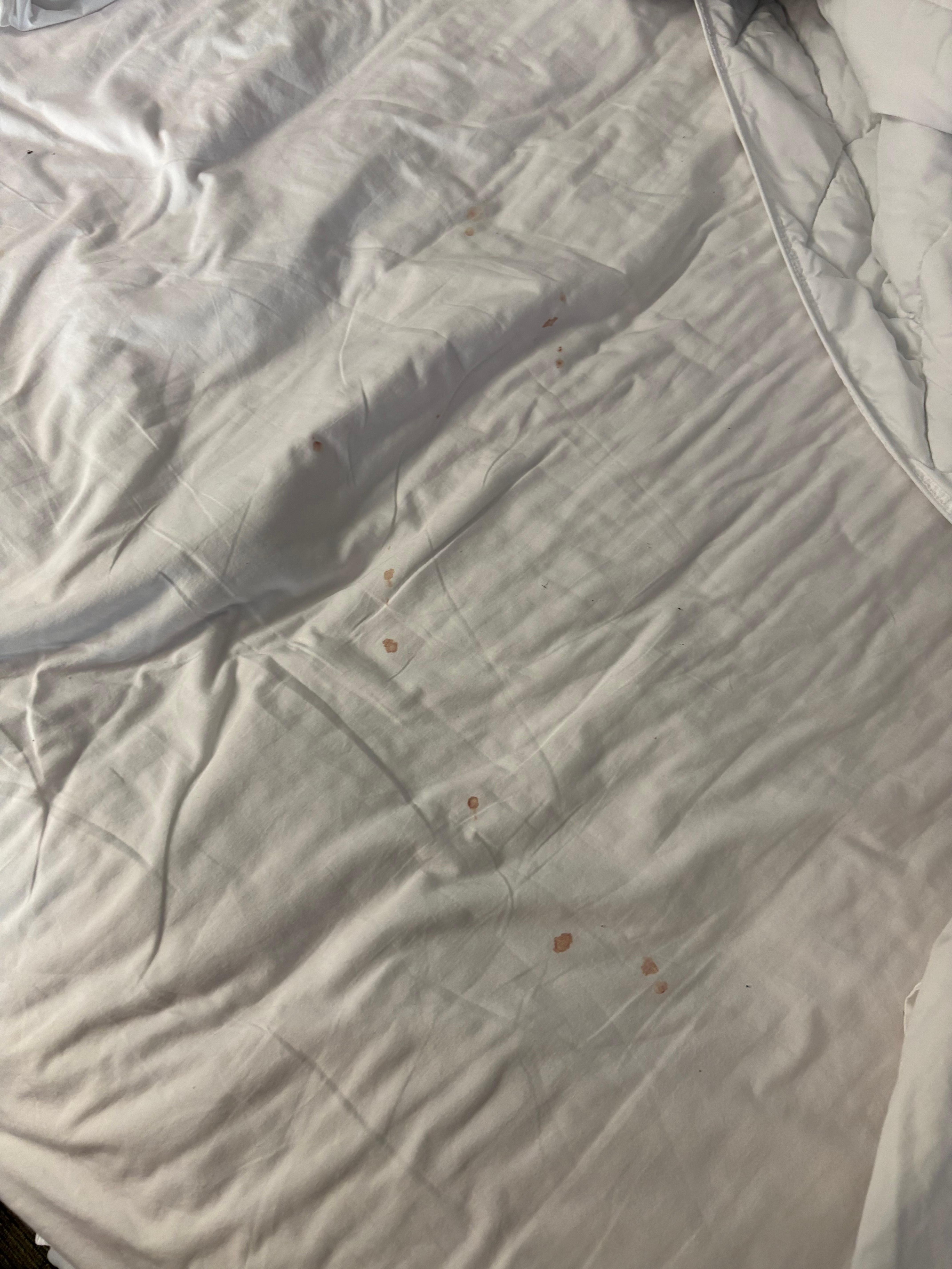 Then, I mention to them when I checked in the room, we remove all linens, we discovered blood stains that have been there a while, and I asked for a change. They ended up charging me for it because upon there policies they do not do housekeeping everyday. MIND YOU this is me discovering it CHECKING IN DAY!
