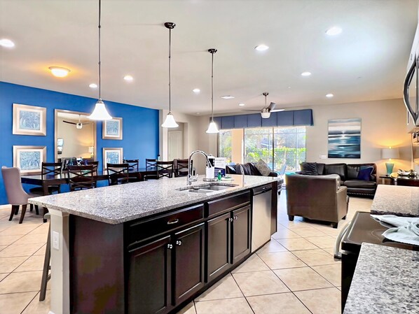Fully Equipped Kitchen with Granite Countertops and Stainless Steel Appliances