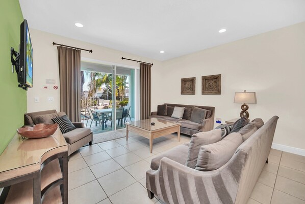 Large open plan family room leading onto the pool deck