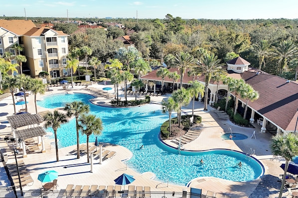 Step outside and enjoy Windsor Hills Resort’s amazing amenities just moments away: a lagoon-style pool, waterpark with slides, movie theater, fitness center, and sports courts for endless family fun.