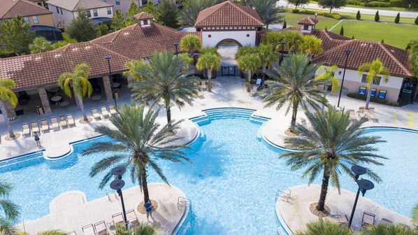 Tired of visiting the parks every day? Step inside of this beautiful 2,490sqft house and discover a private pool, BBQ and a game room specially designed to entertain your family and keep the fun going. Enjoy the resort's clubhouse with a restaurant, pool with water slide, spa, lazy river, gym, playground and a tennis court. Experience the vacation of a lifetime!