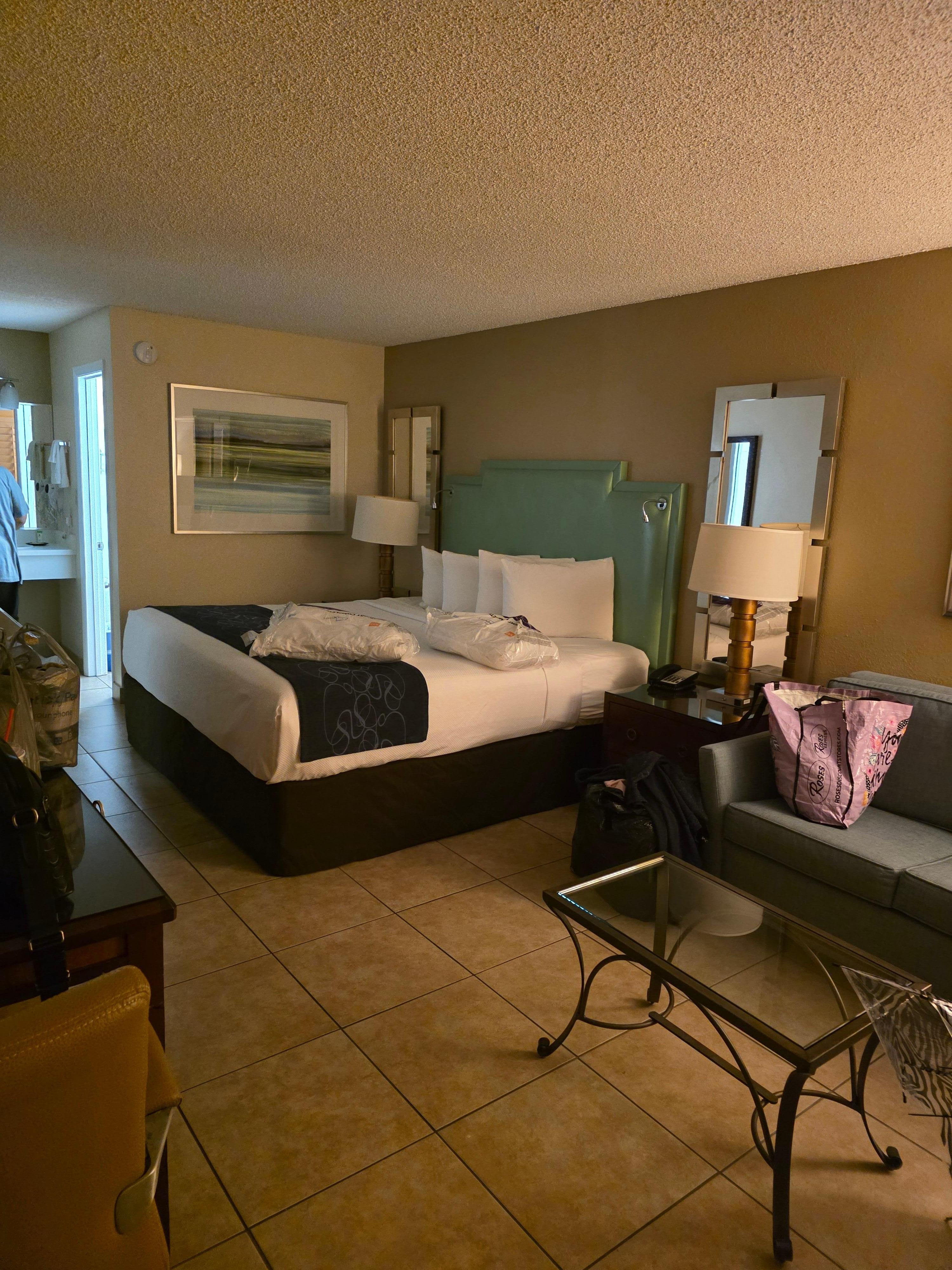 De kamer was verouderd maar wel schoon. De bedden slapen heerlijk. Het ligt dichtbij de winkels, eetgelegenheden en Disney.