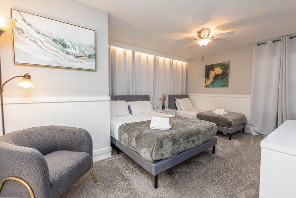 • Bedroom 3: King bed and one twin bed, private bathroom, with TV