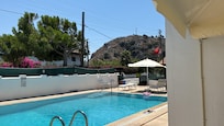 Familie appartement, balkon, uitzicht op zwembad