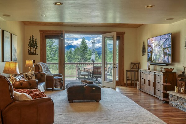 If outdoors is your place to relax, find comfort by the fire pits on either the north or south facing decks, soak in the 8-person hot tub or swing in the hammock chairs while stargazing! Cornhole, ladder toss, giant jenga, yard dice and other outdoor games also provided. Enjoy a glass of wine on the deck while watching out for the local deer, turkeys, elk or fox who happen to stop by!
