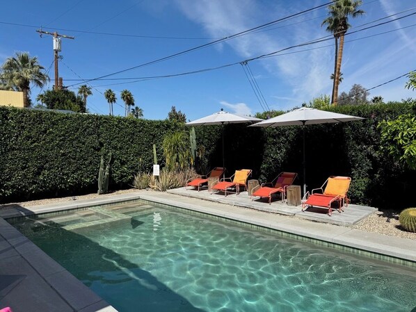 Geniet van een ontspannen verblijf in Palm Springs in een charmant huis in de stijl van 1929, gunstig gelegen in het hart van de stad (naast Palm Canyon Dr).