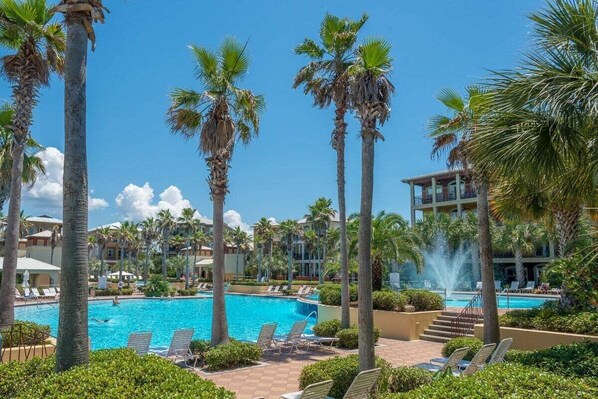 Gratis golfkar trolley service of een eenvoudige 5 minuten lopen naar het strand, en een nog eenvoudiger naar de twee resort zwembaden. Dit huis is perfect voor een spannende strandvakantie. U kunt ook een gratis tram nemen die u en uw gezin naar het strand en terug brengt.