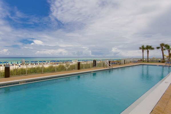 Ocean Reef biedt een buiten- en binnenzwembad aan de golf, een bubbelbad in de openlucht, een stoombad, een sauna en een fitnessruimte aan de Gulf Front, samen met een zwembadpaviljoen met barbecuegrills voor uw kookplezier.