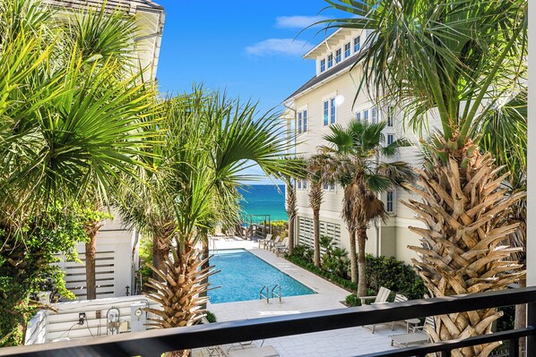 Ontspan na een lange dag op het strand in een van de drie slaapkamers op de derde verdieping, allemaal ingericht met kingsize bedden en een eigen badkamer. Onder deze is de luxe slaapkamer, met een inloopkast en een eigen balkon met love seat, twee stoelen en een salontafel. Geniet van de zonsopgang en zonsondergang vanuit uw eigen suite. Je zult ook grote flatscreen-televisies in elke slaapkamer vinden, perfect om iedereen te vermaken tijdens die incidentele middagdouches.