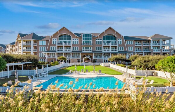 Ontspan op de betegelde, wrap-around veranda, terwijl met uitzicht op de golf front zwembad en biedt de beste locatie voor u uitkijkt over het prachtige strand. Strand loopbrug ligt op een steenworp afstand van uw deur en de gemeenschap clubhuis en het zwembad ligt op 100 meters afstand.