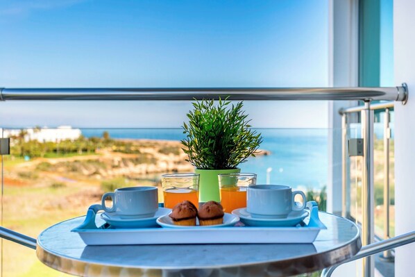 The apartment is fully equipped and has a balcony with Mediterranean Sea views. Free Wi-Fi is available .