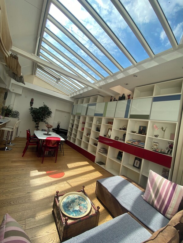Dit appartement ligt in Centrum van Parijs, binnen 10 minuten lopen van Les Halles en Rue de Rivoli. Ook Notre-Dame en Île Saint-Louis liggen binnen 15 minuten lopen. Metrostation Rambuteau ligt op maar 4 minuten lopen en naar Station de Métro Hôtel de Ville is het 7 minuten lopen.