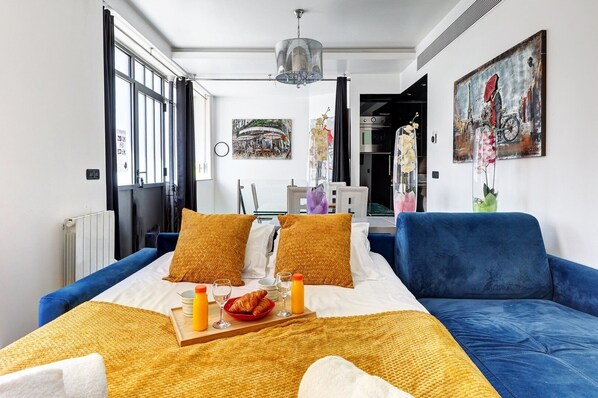 dit appartement is in het stadscentrum in Parijs te vinden. Een aantal culturele hoogtepunten zijn bijvoorbeeld Opéra Garnier en Musée du Louvre. Wie daarnaast graag de winkelstraten afstruint, kan zich bij Champs-Élysées en Galéries Lafayette uitleven. Neem een kijkje bij een evenement of maak een wedstrijd mee bij Stade de France en denk er ook aan wat tijd voor Jardin des Tuileries te maken, een topattractie die je niet mag missen. Bekijk onze reisgids voor Parijs