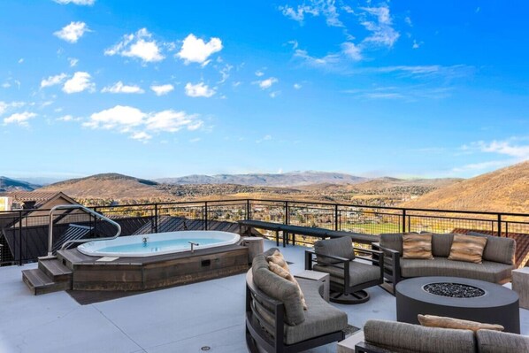 - Enjoy the rooftop patio`s hot tub and fireplace amidst breathtaking mountain scenes.