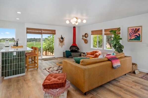 Dit is een ruime cottage met één slaapkamer, omringd door de wijngaarden van het landgoed Pelletiere Estate Winery. De uitzichten zijn overvloedig, vanuit elke hoek. Er is een VOLLEDIGE keuken, grote leefruimte met eethoek, grote slaapkamer en groot bad met bad / douche. Het huisje is smaakvol ingericht en goed ingericht met uw comfort in gedachten. Flatscreen-tv, met dvd-speler, kabel en draadloze wifi. Huurders kunnen door de prachtige wijngaard wandelen en het proeflokaal van het wijnhuis bezoeken, of gewoon genieten van het uitzicht vanaf uw privéterras met een fles landgoedwijn. Kingsize bed, met luxe beddengoed en gezellige, zachte badjassen. Er is een pellet open haard in de woonkamer en een goed uitgeruste keuken; inclusief koffiepot, magnetron, full-size fornuis / oven en koelkast. De natuur is overal, van onze huiskat en kleine kudde schapen tot wilde dieren in de wijngaard. Verschillende andere wijnhuizen liggen op loopafstand en vele, veel binnen een korte rit. Het huisje is uitgerust met badproducten, mineraalwater, informatie over lokale bezienswaardigheden, wijnmakerijkaarten en aanbevelingen.