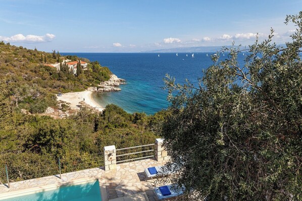 Prive-villa met spectaculair uitzicht, Infinity-zwembad, op slechts 3 minuten rijden naar Gaios