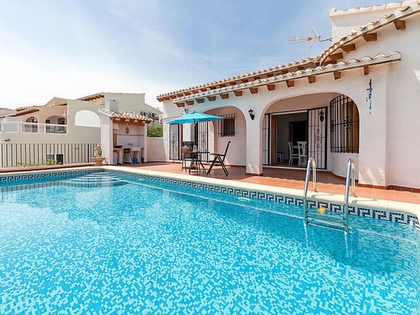 Monte Pego 15 km van Denia: Zeer mooi, comfortabele villa "Jillian". Rustige, zonnige, verhoogde ligging villa wijk, gebied met weinig verkeer, 7 km van zee, 7 km van het strand, aan een doodlopende weg. Voor alleengebruik: mooie tuin op verschillende niveaus (omheind), openluchtzwembad (4 x 8 m, 90 - 190 cm diepte, seizoensgebonden beschikbaarheid: 01.Jan. - 31.Dec.). In het huis: wasmachine, droger. Parkeerplaats (voor 2 auto's). Bushalte 7.4 km. De eigenaar accepteert geen jeugdgroepen.