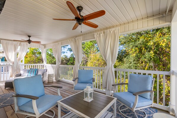 Welcome to the ultimate Beach Getaway, The Blue Heron, proudly managed by Beach Getaways. Breathe in the salty Gulf air as you relax on a hammock or sip a morning coffee from one of the two private balconies, feeling the gentle breeze sway through the trees. Hear the laughter of family and friends around the backyard grill, the shuffle of a tabletop game, or the soft paw-steps of your furry companion exploring the spacious yard. From quiet sunrise moments to lively evening gatherings under the open sky, The Blue Heron immerses you in the sights, sounds, and carefree charm of Perdido Key living.