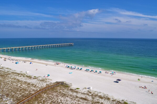 Zoals eerder vermeld ligt dit appartement direct aan het strand. Het strand heeft luxe wit glad zand en helder smaragdblauw water. Het gebied is perfect bevolkt, niet zoals veel overvolle vakantieplekken.
