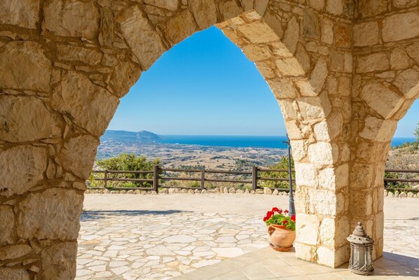 to the private swimming pool with sea and country side views. There is