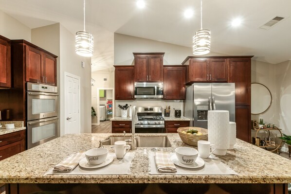 This beautiful home sleeps up to 12 people, making it an ideal spot for a multi-family vacation or holiday gathering.