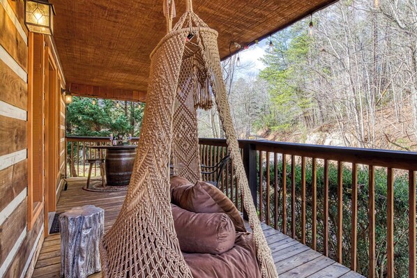 Step onto the private deck and soak in the bubbling hot tub as the Smoky Mountain sunrises and sunsets paint the sky with breathtaking hues of love.