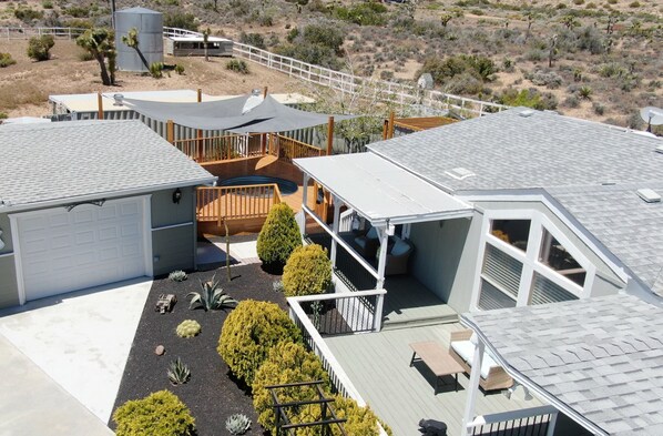Peaceful 3-bed Pioneertown retreat with fire pit, outdoor shower, and cowboy tub