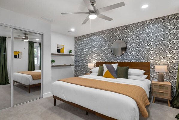 Second Floor Quiet and private with great views. • 2 King Bedrooms – Spacious, bright, each with blackout curtains and smart TVs • Full Bathroom – Centrally located in the hallway • Washer & Dryer – Laundry nook near the stairs