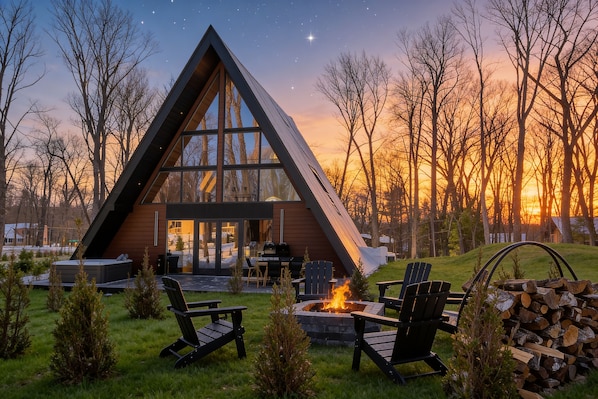 Welcome to your dream escape in the Poconos — a designer A-Frame cabin surrounded by peaceful forest and located just 2 minutes from the lake, where you’ll find kayaks, fishing, swimming, and tennis court waiting for you.