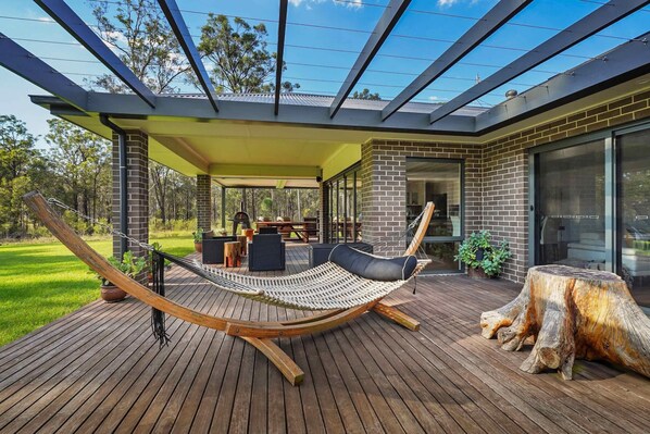 Mirambeena, means welcome and you're invited to enjoy all the Hunter Valley has to offer from this brand new 5 bedroom home. Located along Hermitage Rd, this private location is close to fabulous cellar doors and restaurants and offers up to 12 guests, spacious, stylish accommodation with plenty of room to move.
