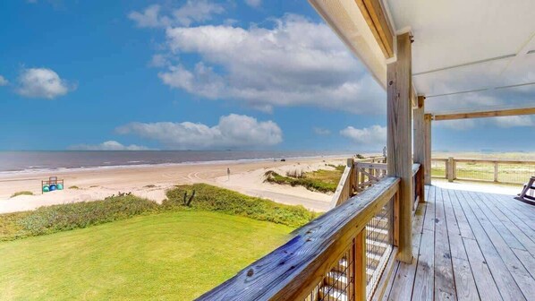 Een trap naar de hemel Ik bied je de luxe van een onbelemmerd uitzicht op het zuiden en zuidwesten van de prachtige kustlijn van de Golf van Mexico naar de stad Galveston. Velen hebben ervaren een aantal van de beste vissen direct voor het huis. Mooie rustige buurt in een natuurlijk aangelegde omgeving. Huis biedt uitzicht op het strand vanuit alle slaapkamers, 2 trappen en dekken, tafeltennistafel en externe luidsprekers. Beschikt over een bad met ADA-functies / Handicap badkamer en heeft brede gangen. Neem gerust een paar luchtbedden mee voor nog 4 personen. Huisdieren niet toegestaan Linnengoed beschikbaar tegen betaling op aanvraag. Geschikt voor 10 meer met zusterhuis naast de deur - A Stairway to Heaven II. Niet roken, geen huisdieren.