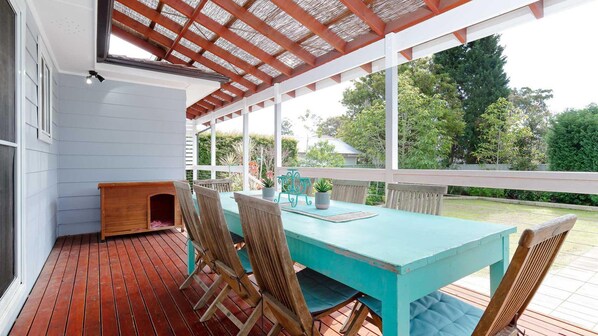 A LOT MORE Information is needed about this property for guests to make informed choice to stay and hire - it is not well sign posted - it is very difficult to see the house number when it faces down the street on the mail box instead of out towards the street; the driveway is not open and easily identified and is very steep and could be tricky to navigate in a bigger vehicle; specify that air con is only in the living area; advise linen is required in the listing before people book; say no basics in kitchen like sugar and a tea towel; the property needs a thorough clean - corners of rooms need attention; gaps in floor boards that you can see through to the ground; exhaust fan in the separate toilet is very noisy; all exhaust fans in bathrooms need cleaning; front screen door doesn't lock & screen door in back bedroom has no lock - not secure; need handrail on other side of front steps; we were told there were 2 queen sized beds - 1 queen 1 double; the double bed wasn't the best - too low; there were far too many messages from Real Estate agent - I would prefer 1 email with all necessary information rather than multiple messages each day e.g. not aware of needing linen until 2 weeks before stay; not aware of having to put the bins out until AFTER we had left Nelson Bay; even though we had a great time with friends I would not book this property again