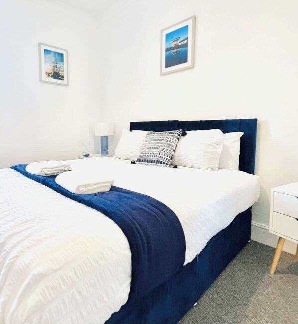 For complete relaxation, block out the world with large blackout blinds, creating the perfect cosy retreat.