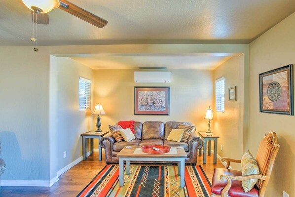 Deze gerenoveerde cottage met 2 slaapkamers en 1 badkamer uit 1940 heeft alles wat u nodig heeft om u meteen thuis te voelen. De master heeft een koningin en tweede slaapkamer heeft een eenpersoonsbed met een twin onderschuifbed, samen met een slaapbank in de vooringang. Volledig uitgeruste keuken met SS-apparaten en alle voorzieningen die u nodig heeft. De badkamer heeft een inloopdouche, de woonkamer heeft een lederen bank, er zijn 3 flatscreen-tv's met satelliet, WiFi, veranda, achtertuin met gasgrill. Gedeelde items: chimena, picknicktafel, speelgoed, cruiser bikes en games. Er is een supermarkt Safeway aan de overkant van de straat. Acht tienden van een mijl van de beroemde Whiskey Row met bars zoals de Bird Cage, Matts Saloon en Jersey Lillys Saloon om er maar een paar te noemen. Prescott Courthouse Plaza voor evenementen zoals: kunst- en handwerkshows, zomerconcertreeksen samen met straatdansen, 4 juli Parade ter viering van 's werelds oudste rodeo, Christmas Courthouse Lighting, Christmas Parade, Ackner Music Night om er maar een paar te noemen. U bevindt zich op 10 minuten rijden van het Prescott National Forest, Goldwater en Lynx Lakes, Lynx Creek Ruins en vele wandel- en fietspaden.