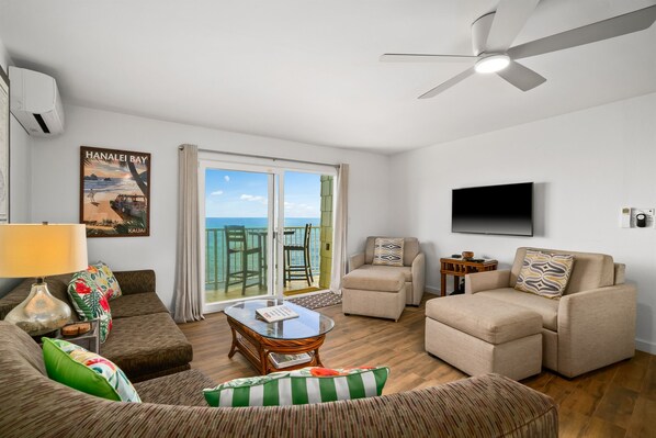 This completely remodeled, sun-lit and spacious 2-bedroom, 2-bath condo at The Point at Alii Kai (Unit 5-302) welcomes your group to an unforgettable vacation in Princeville, where you'll face jaw-dropping, direct Pacific Ocean views on Kauai’s North Shore.