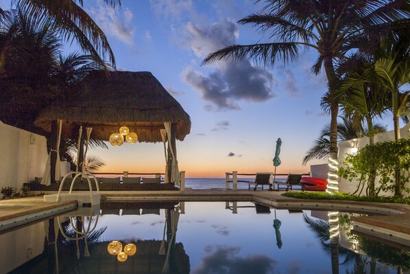 Welcome to Villa Karina, an oceanfront luxury villa awaiting you in Puerto Morelos, a hidden gem on the Mayan Riviera. This very private retreat is a true oasis by the sea.The exquisite villa allows you to experience beachfront living at its finest, complete with privacy, breathtaking views, comfort, and superb service, the perfect setting for a family vacation, excursion with friends or a quick romantic getaway.